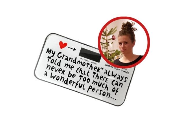 Ein Kochbuch für Gesundheitsbewusste zu verschenken ist ja noch relativ charmant im Vergleich zu einer Körperwaage, die ich zu Weihnachten bekommen habe. Naja, mit dem Spruch „My Grandmother always told me, that there can never be too much of a wonderful person…“ (Meine Großmutter hat mir immer gesagt, dass es nie genug von einer wundervollen Person geben kann…) ist sie ja eigentlich noch ganz „nett“.