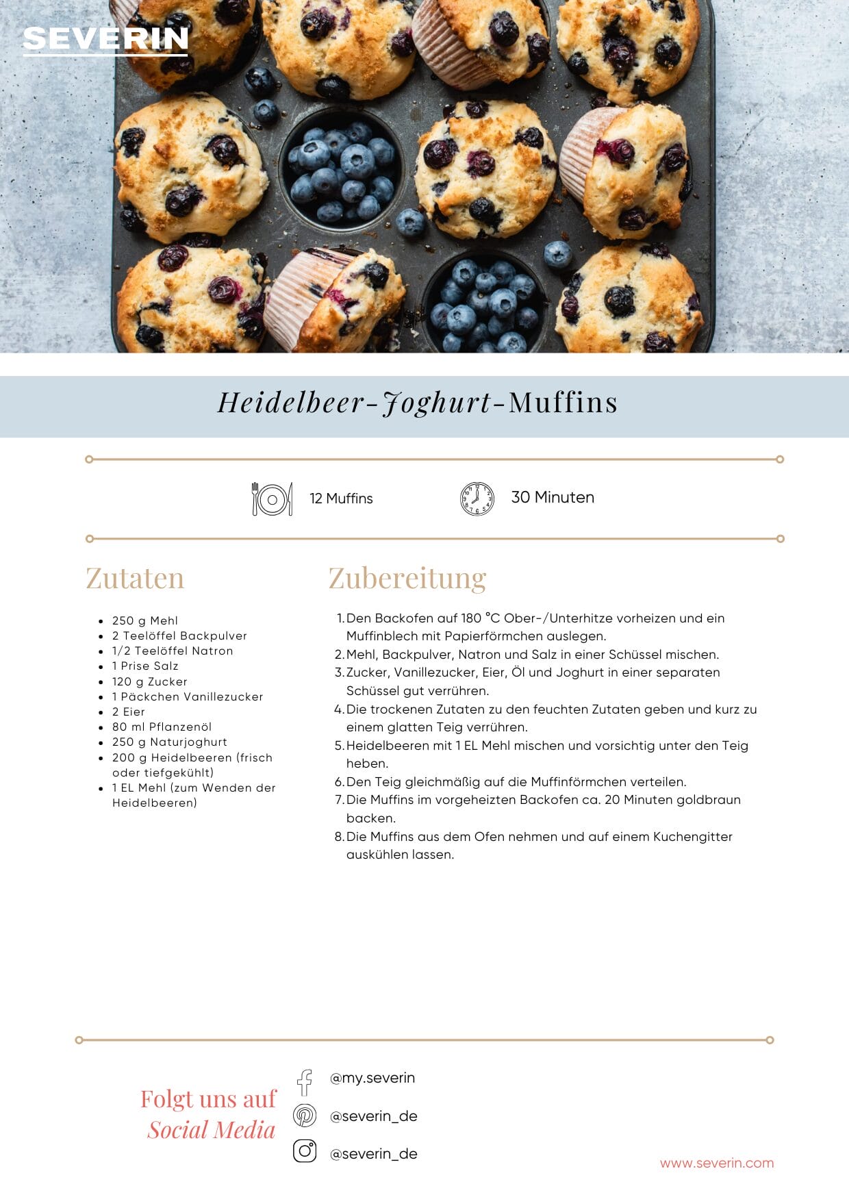 Heidelbeer-Joghurt-Muffins sind ein leckerer und schneller Snack für zwischendurch. Die saftigen Muffins sind nicht nur einfach zuzubereiten, sondern durch den Joghurt auch besonders locker. Ob zum Frühstück, als Nachmittagssnack oder als süßer Abschluss eines Menüs - die Blaubeer-Muffins sind immer eine gute Wahl.