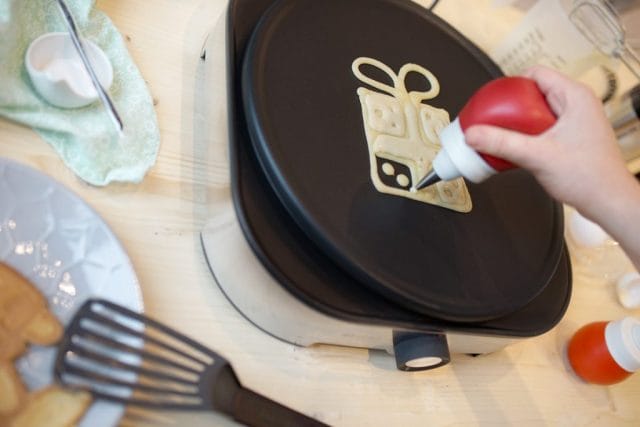 Den Crêpes-Maker auf Stufe 4 vorheizen. Im Anschluss auf Stufe 2 – 3 stellen. Die richtige Temperatur ist sehr wichtig, da wir mit den Bräunungsgraden arbeiten: Ist die Temperatur zu hoch, dann werden die ersten Teigstellen zu schnell dunkel, ist sie zu niedrig, dann verlaufen die Konturen.