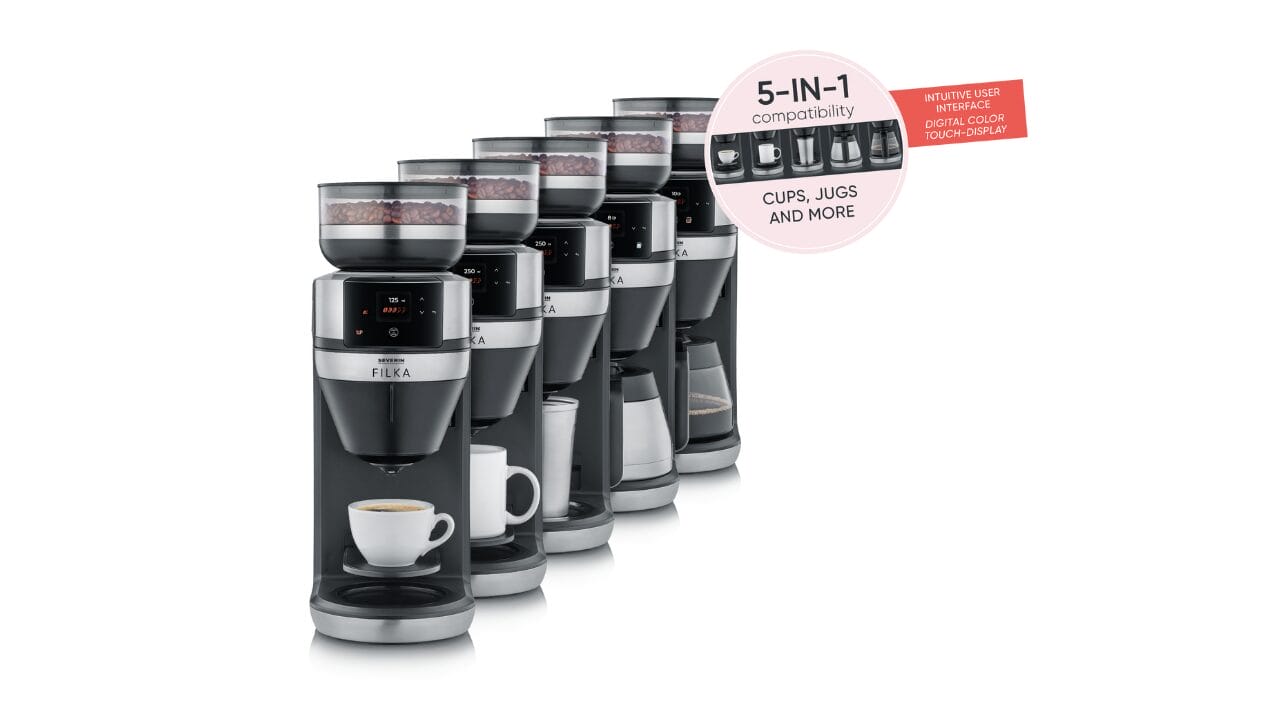 Der innovative Filterkaffee-Vollautomat FILKA von SEVERIN hat sich im Markt durchgesetzt: Ein einfacher Knopfdruck genügt, und die FILKA zaubert frisch gemahlenen, perfekt temperierten Kaffee in Premiumqualität in fünf unterschiedlichen Portionsgrößen – egal ob kleine oder mittlere Tasse, To-Go-Becher, Glas- oder Thermokanne.