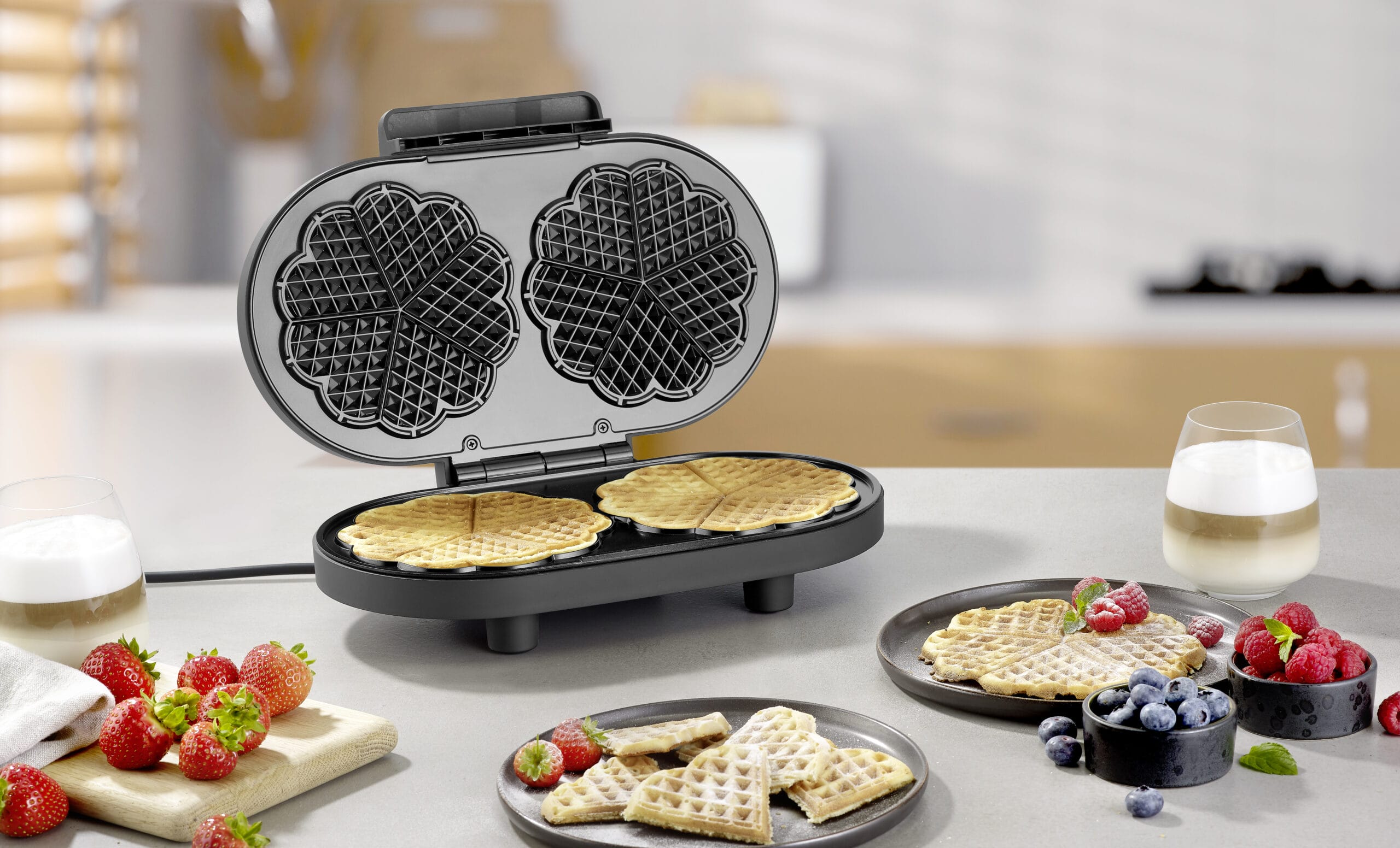 - WA 2118 Duo-Waffeleisen (UVP: 59,99 €): Backt zwei herzförmige Waffeln gleichzeitig – perfekt für den doppelten Genuss.