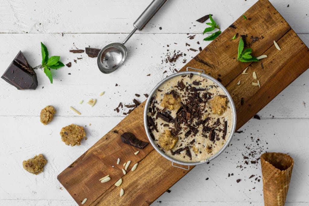 Wir präsentieren: Veganes Cookie Dough Eis! Knuspriger Keksteig trifft auf cremig schmelzendes Eis – ein absoluter Traum für alle Naschkatzen da draußen. Und das Beste daran? Ganz ohne tierische Produkte, aber mit einem himmlischen Geschmack! Also Löffel bereit halten und los geht’s.