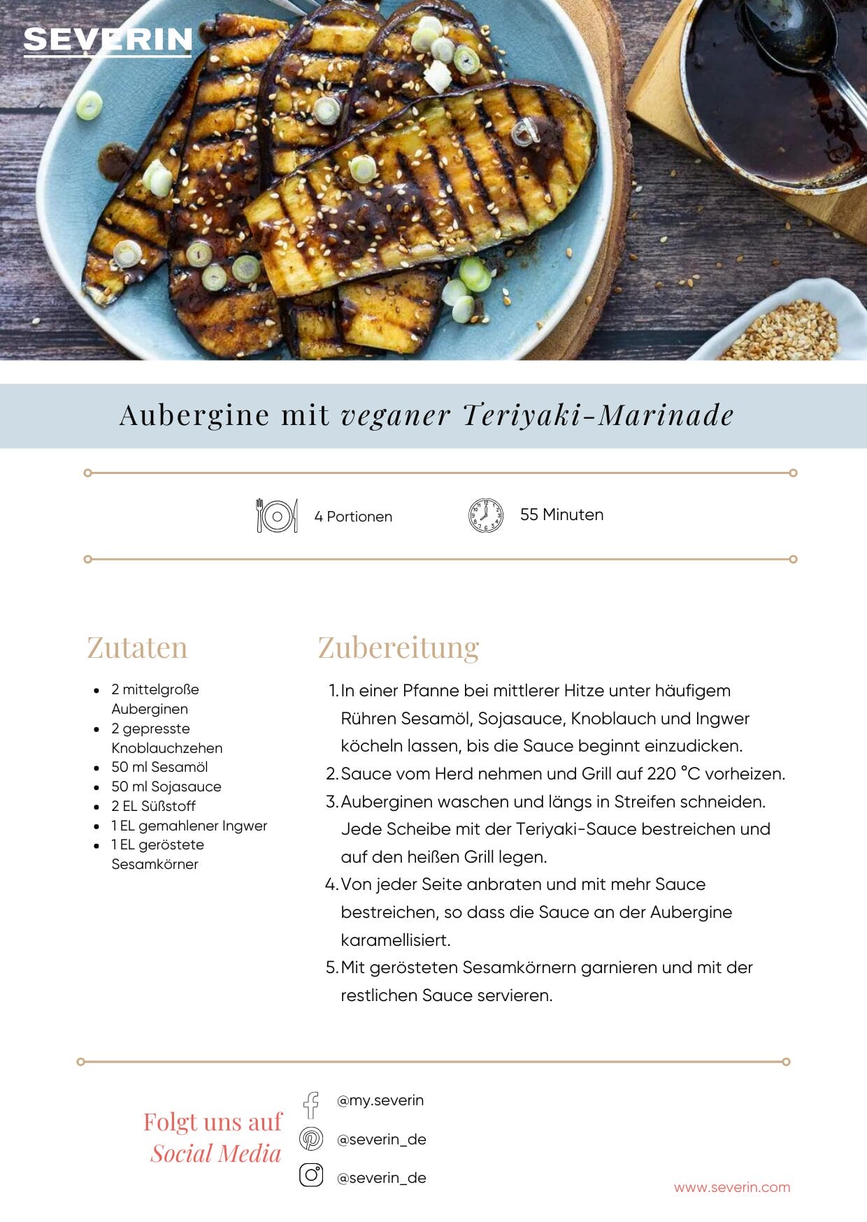 Passend für eure nächste Party kommt nun ein veganes Grillrezept inspiriert durch die asiatische Küche. Im Handumdrehen zauberst du dir eine selbstgemachte Teriyaki-Marinade. Mit leckeren Auberginen Scheiben überzeugt das Rezept nicht nur als leckere Beilage zum restlichen Grillgut. Überzeug dich selbst und genieße das asiatisch angehauchte Grillerlebnis.