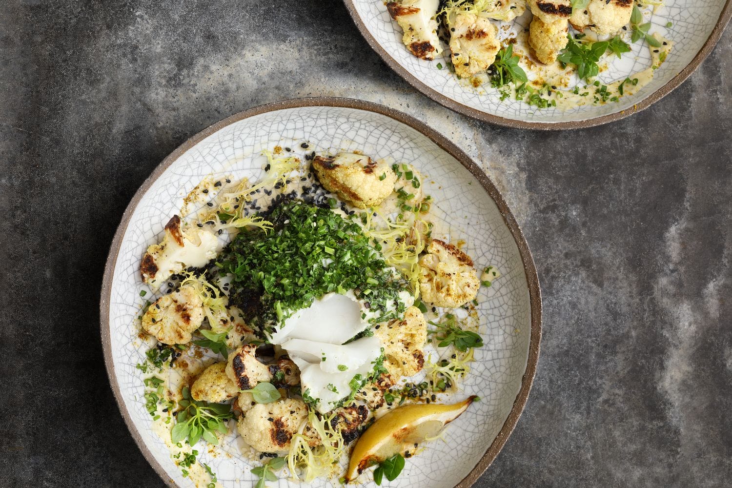 Kabeljau-Loins im Kräutermantel mit Dijonnaise und gegrilltem Blumenkohl