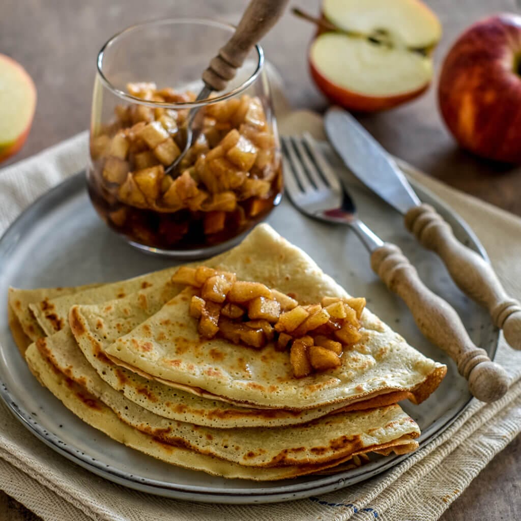 Süße Crêpes mit karamellisierten Zimt-Äpfeln