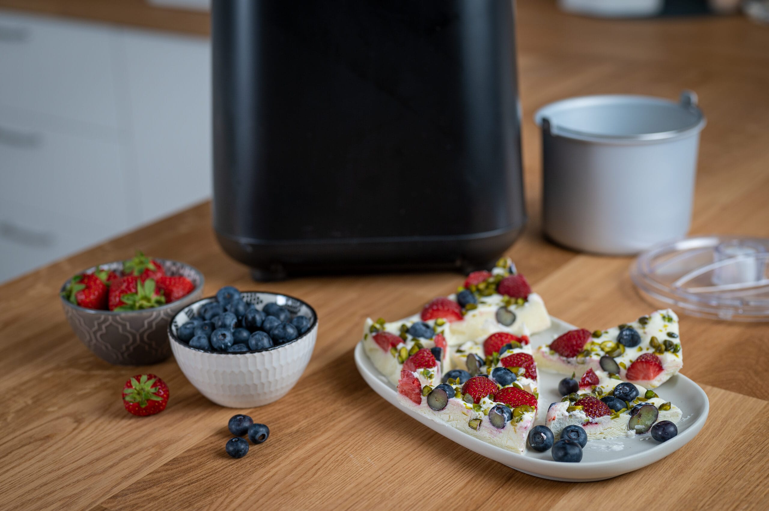 Wie der Name auch schon sagt, geht es bei Frozen Yogurt Bites um gefrorenen Joghurt kombiniert mit leckeren Früchten. Egal, ob Naturjoghurt oder Fruchtjoghurt, das ist eurem eigenen Geschmack überlassen. Ihr könnt sogar euren eigenen selbstgemachten Joghurt verwenden, falls ihr einen Joghurtmaker zuhause habt. Auch bei den Früchten ist euch freie Wahl gelassen, probiert dort gerne verschiedene Varianten aus.