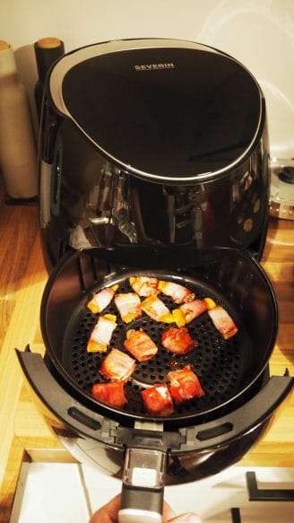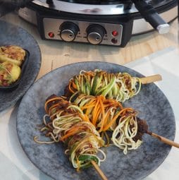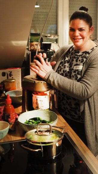 Gern kannst Du Deine Gäste auch dazu ermutigen mit anzupacken und Dich bei den letzten Vorbereitungen zu unterstützen. Hier macht Laura mit unserem Mr. Twister Gemüsenudeln für die Asia Nudelnester, die im Anschluss nur noch auf der Grillplatte gegrillt werden müssen. Währenddessen lassen sich in einer Heißluftfritteuse leckere Starter, wie z.b. Mangos im Speckmantel wie von Zauberhand zubereiten.