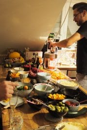 Nachdem wir diese Punkte mit Kerstin geklärt hatten, überlegten Rezeptschleuder Sibylle und ich, welche Leckereien wir den Gästen anbieten werden. Wir haben uns für Fingerfood-Starter sowie ein leckeres Raclette und Fondue entschieden. Dieses lässt sich nicht nur wunderbar vorbereiten, sondern jeder Gast kann sich seine Pfännchen so füllen, wie er es am liebsten mag. Das Beste an dieser Idee: Alles lässt sich im Voraus vorbereiten.