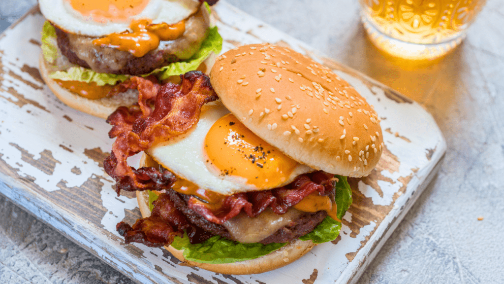 Saftiges Rinderhackfleisch, knuspriger Speck, ein Spiegelei und geschmolzener Käse zwischen zwei fluffigen Brötchen. Ein Biss und der Kater ist vergessen – genau das Richtige für den Tag danach.