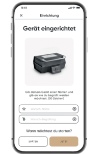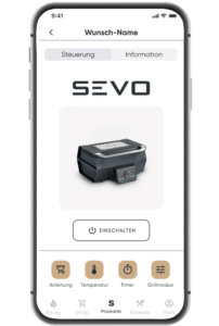 Wer möchte, kann dem SEVO Smart Control sogar einen eigenen Namen geben. Ihr Grill – Ihr Freund fürs Leben! Der Grill verbindet sich mit dem Mobiltelefon, wird dann via WiFi gesteuert und kann in der Geräteübersicht ausgewählt werden. Um den Grill zu starten ist der Benutzer gefragt. Erst nach anschalten direkt am Gerät, geht es wirklich los. Sicher ist sicher!