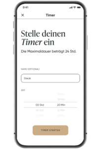 Mithilfe des Timers kann die Grillzeit überwacht werden. Die Laufzeit kann von 1 Minute bis zu 24 Stunden eingestellt werden. Nach Ablauf der Zeit wird man durch die App informiert und es ertönt am Grill ein akustisches Signal. Hinweis: Auch wenn der Timer abgelaufen ist, schaltet der Grill nicht automatisch ab! Jetzt sind Sie gefragt.