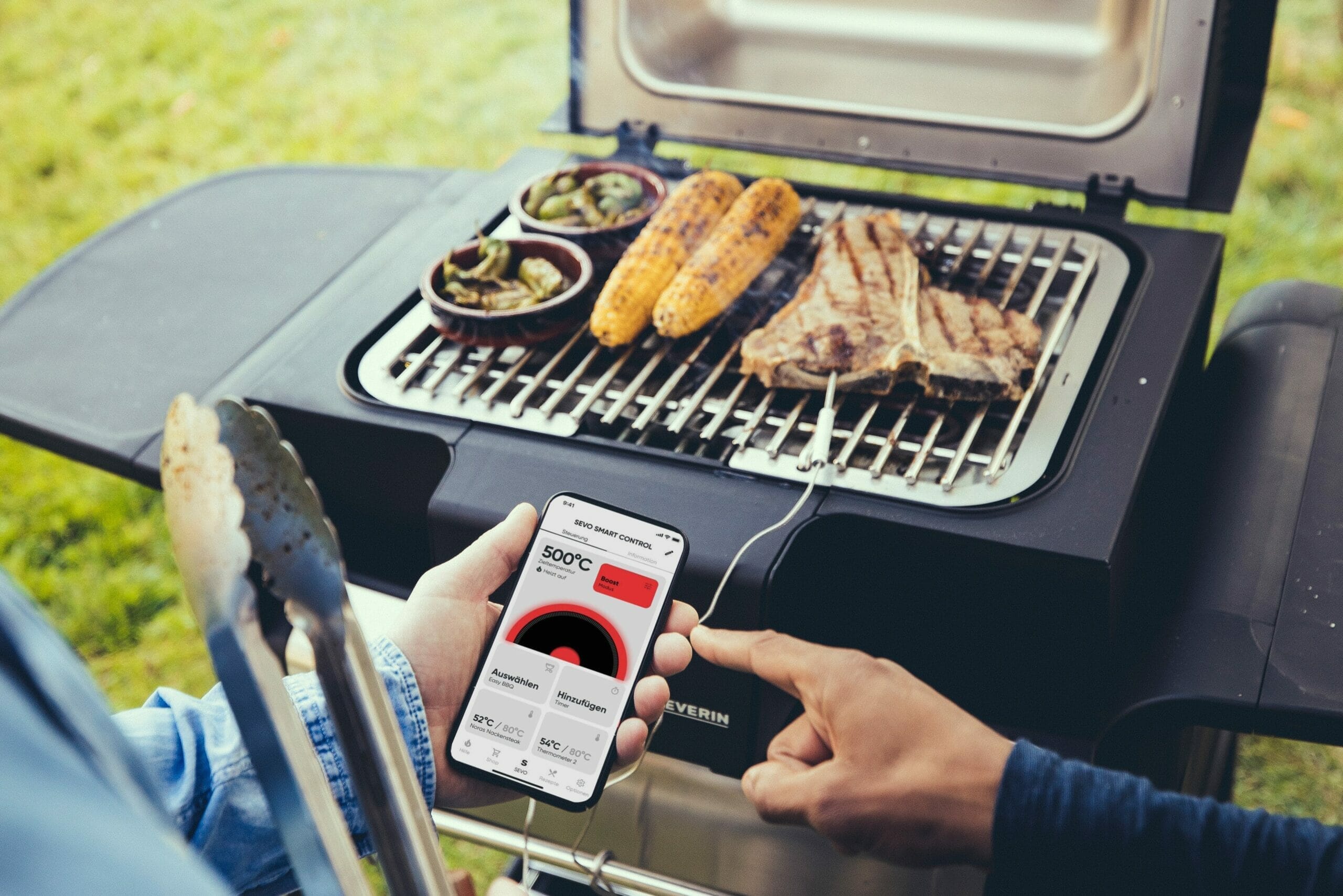 Die SEVERIN App-Steuerung im Zusammenspiel mit der neuen 3-Zonen-Heizungstechnologie lässt jeden über sich hinauswachsen, denn sie führt Step-by-Step durch das Rezept Ihrer Wahl, so dass selbst komplexe Gerichte sicher gelingen. Egal wer der Grillmaster ist, er gibt die Kontrolle nie aus der Hand, kann aber in den Gaarprozesszeiten bequem im Garten sitzen oder sich seinen Gästen widmen, denn sowohl die Temperaturkontrolle als auch die Änderung der Zieltemperatur können über die SEVERIN App erfolgen.