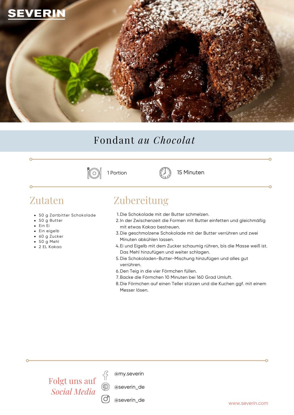Fondant au Chocolat, the epitome of French dessert art, impresses with its warm, liquid chocolate center and melt-in-the-mouth shell. You can spoil yourself and your guests with this recipe - and the best thing about it: it's really easy to make! With just a few ingredients and in just a few steps, you can conjure up a dessert that will delight any chocolate lover.