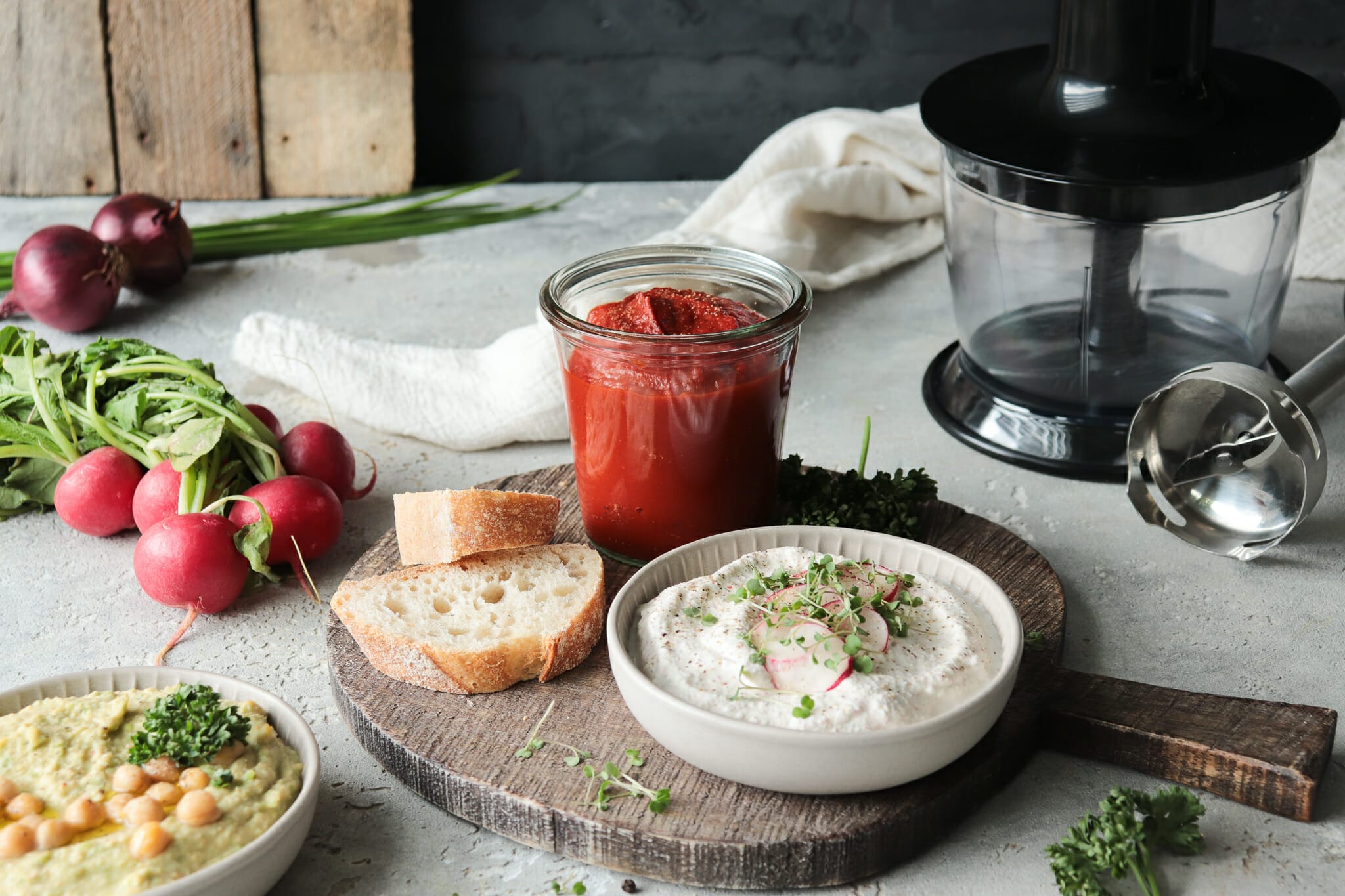 Are you looking for a quick and easy way to prepare a variety of tasty and healthy dips at home? The premium cordless hand blender set is the perfect solution for you! In this article, we present 3 easy and delicious vegetarian dip recipes that you can prepare with the Premium Cordless Hand Blender Set. These dips are not only super easy to prepare, but also packed with flavor and nutrients. So grab your hand blender and get started!