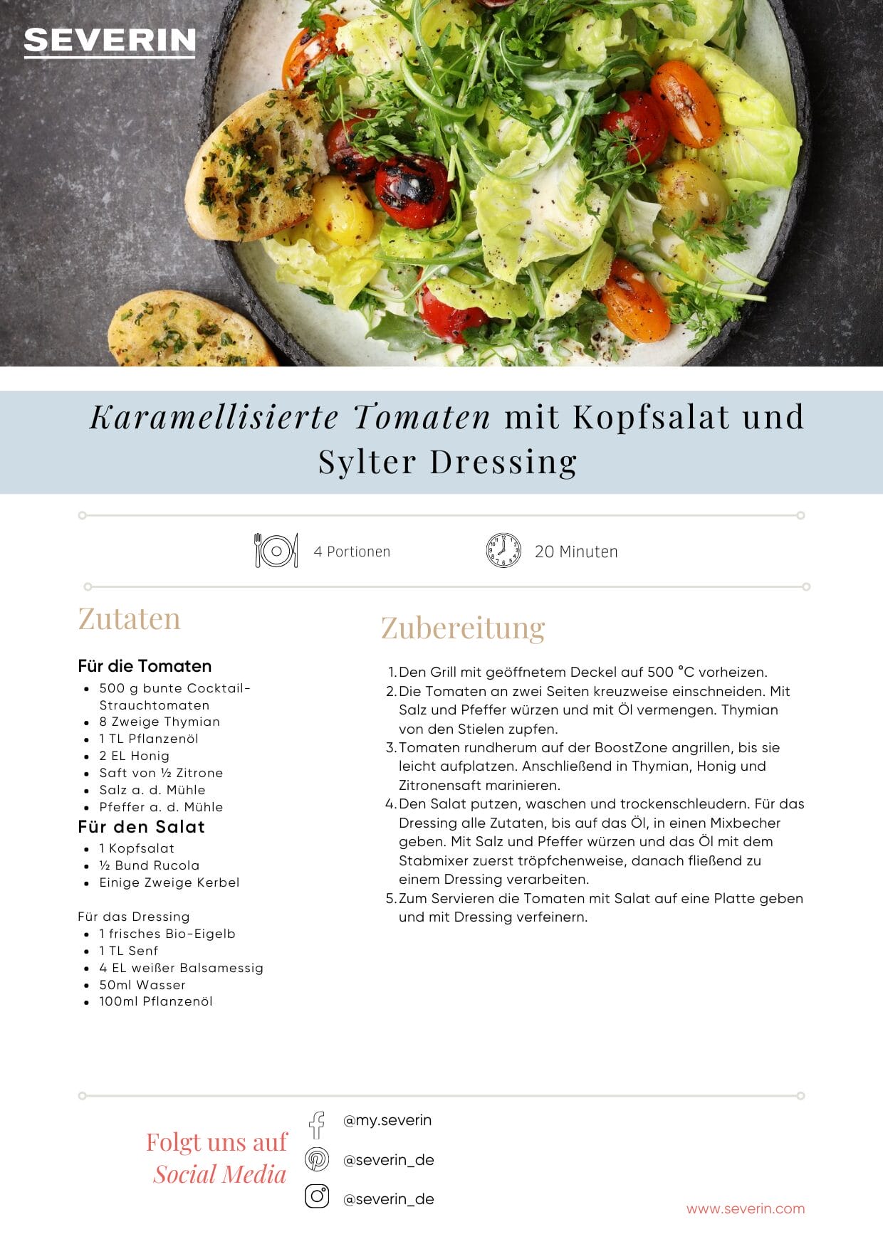 - Grill the tomatoes all over on the BoostZone until they burst open slightly. Then marinate in thyme, honey and lemon juice.