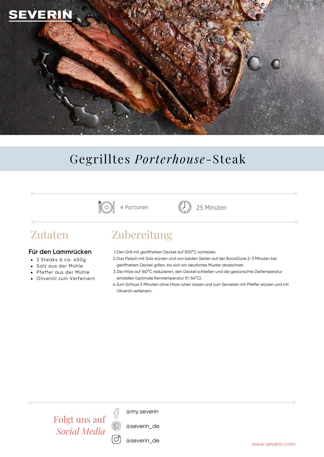 The porterhouse steak is cut with fillet and bone from the flat roast beef. The name is derived from the British and American pubs where porter beer was served. Preparation on the electric grill is quick and easy, so let's get started!