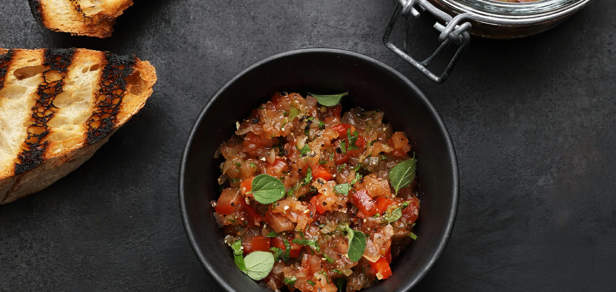 This tomato and bell pepper relish is the perfect side dish for fish or meat. It is light and tastes fruity and fresh. Enjoy your meal!