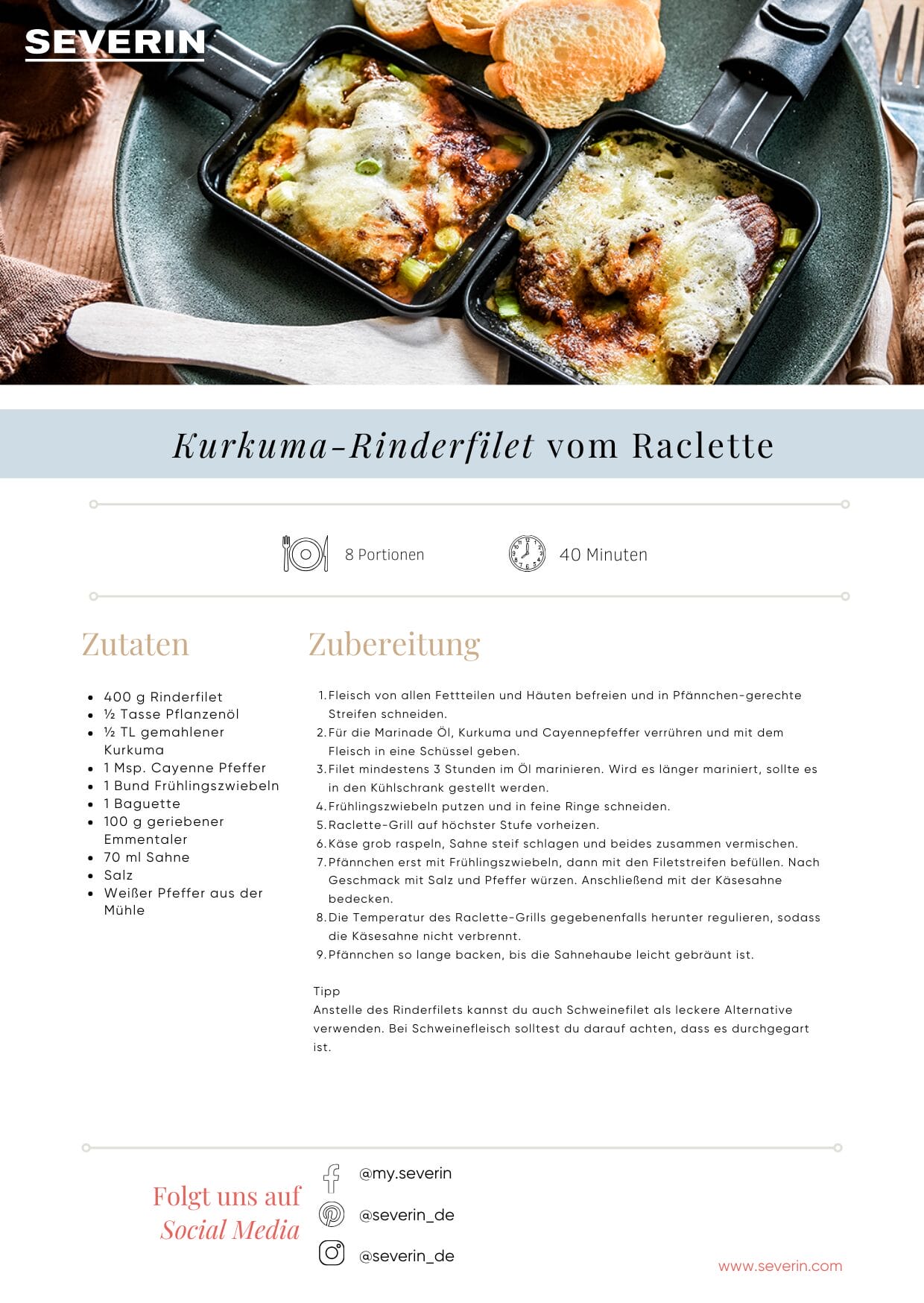 There should be a highlight on every raclette evening. A surprising dish that shows what is possible with a raclette grill and how varied a raclette dinner can be. Everyone is already familiar with classics such as gratinated potatoes. If you want to really wow your guests, you should definitely try the turmeric beef fillet pans.