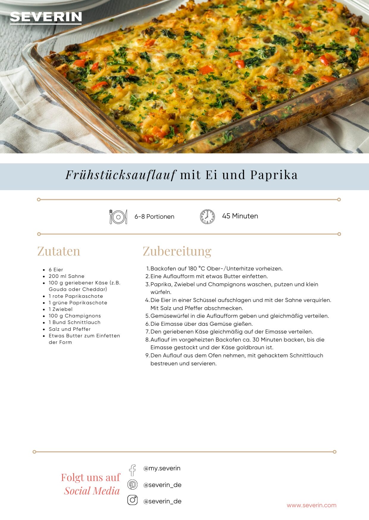 This delicious egg casserole is a wonderful way to prepare a quick and easy breakfast or dinner. The combination of eggs, vegetables and cheese is not only delicious, but also very nutritious. Perfect for a leisurely start to the day or a light evening meal.
