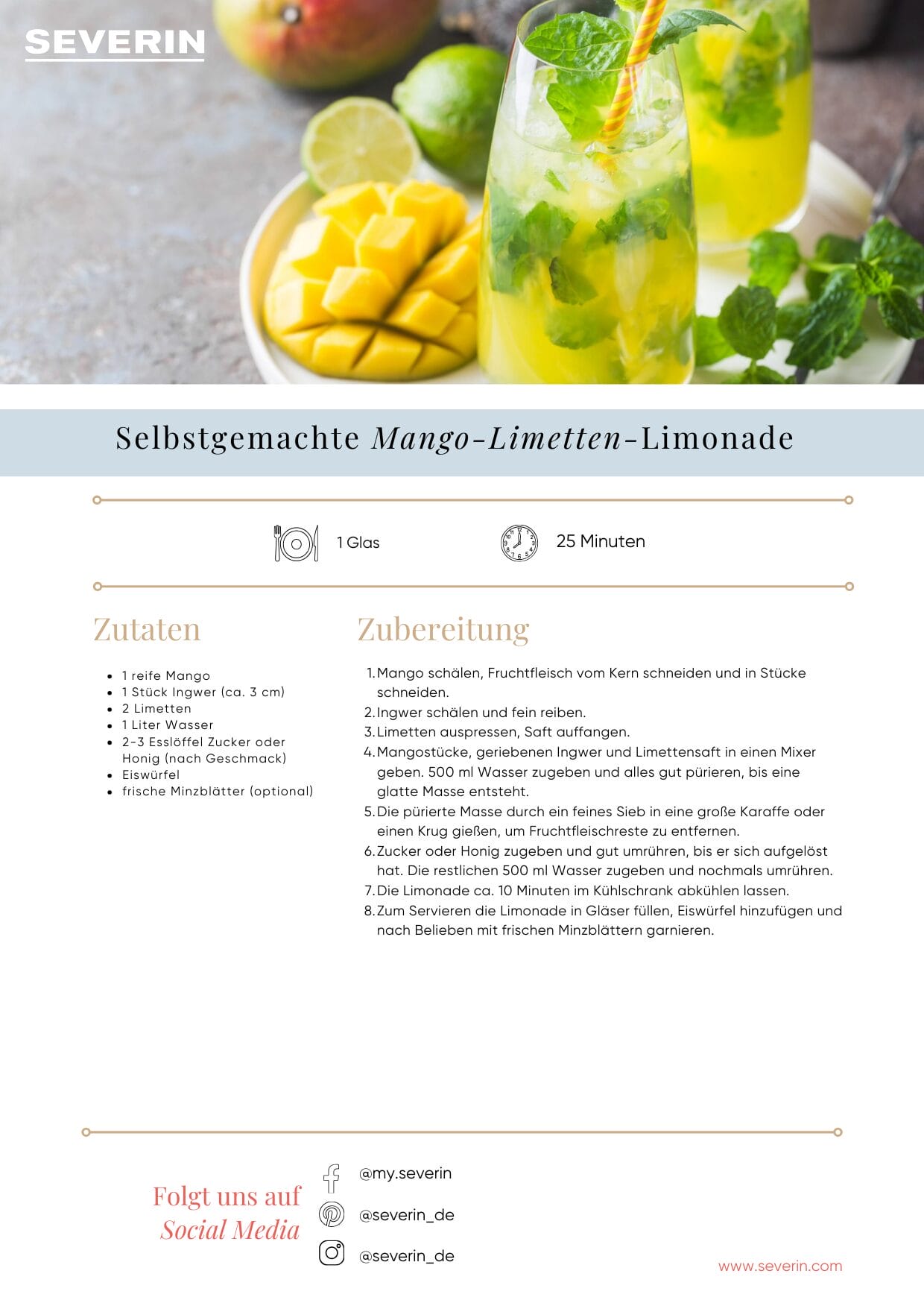 The refreshing mango-ginger-lime is the perfect thirst quencher for hot summer days. The sweet freshness of the mango, the spicy heat of the ginger and the tangy acidity of the lime create a harmonious and invigorating taste experience.