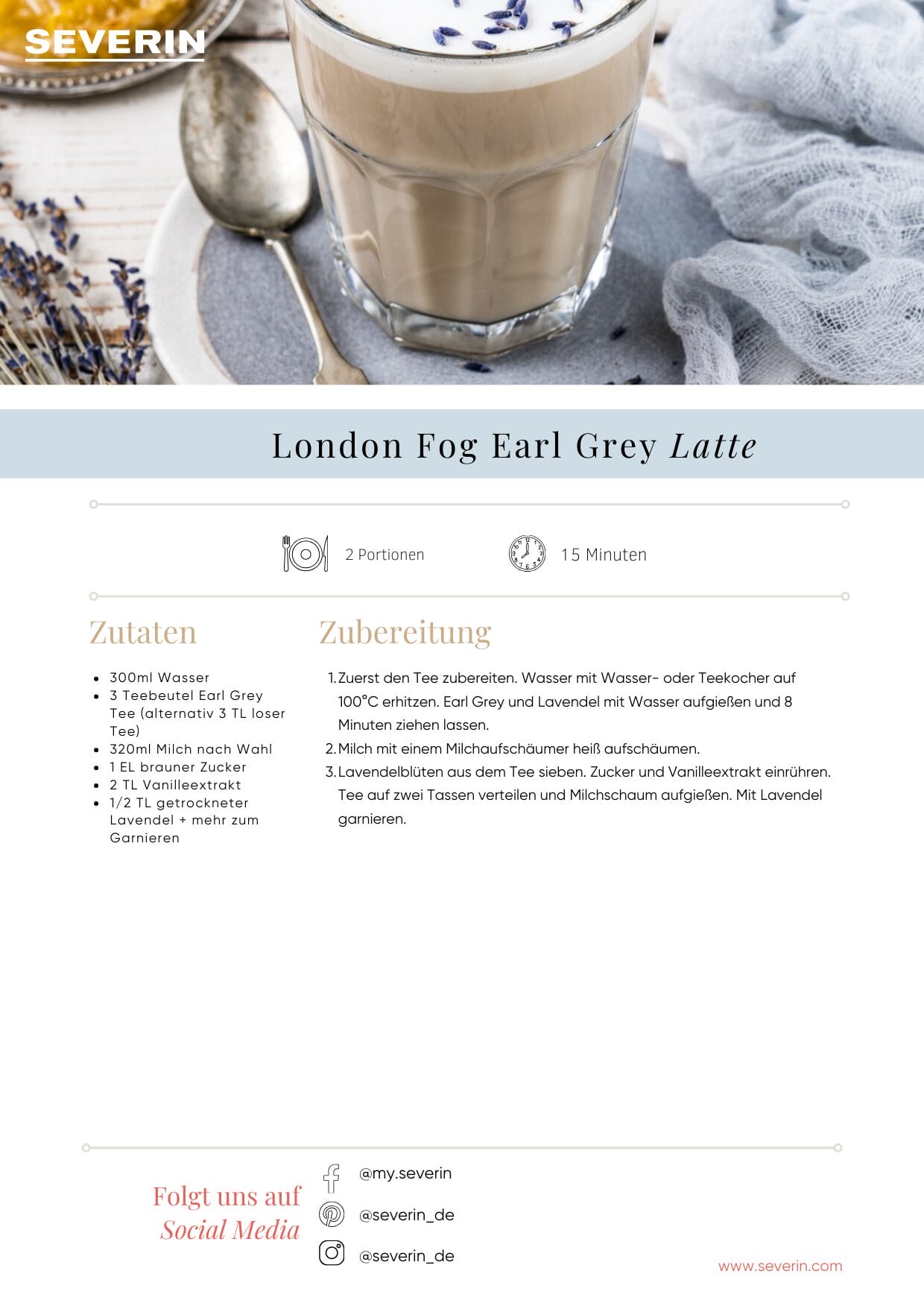 The feel-good drink for all cold winter days: the London Fog Earl Grey Latte. With aromatic Earl Grey tea, sweet vanilla flavor and floral lavender, the drink is perfect for a quiet moment to switch off - and the milk foam topping makes it a great alternative to a latte macchiato. We think you have to try it.