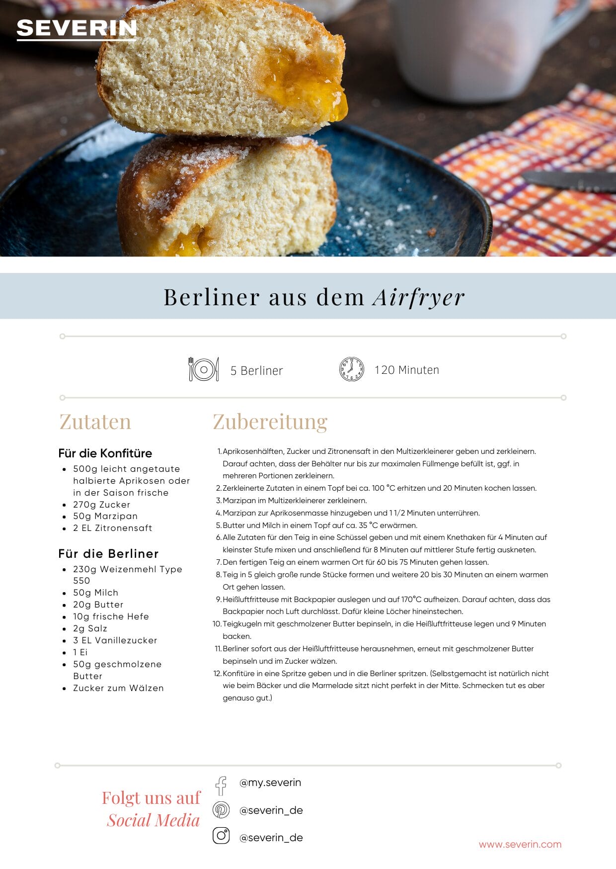 Over the course of time, the pastry has been given countless names, which vary depending on the region. Here in the Sauerland, the sweet temptation is called Berliner. in Berlin, on the other hand, they are called pancakes, so watch out when you order them from the bakery. The classic pastry is usually baked in fat, but nobody wants to throw their good intentions overboard in February. That’s why the little pastry balls are now also available in a slightly healthier version from the hot air fryer. Add homemade jam for the filling and the sweet snack is ready to enjoy.