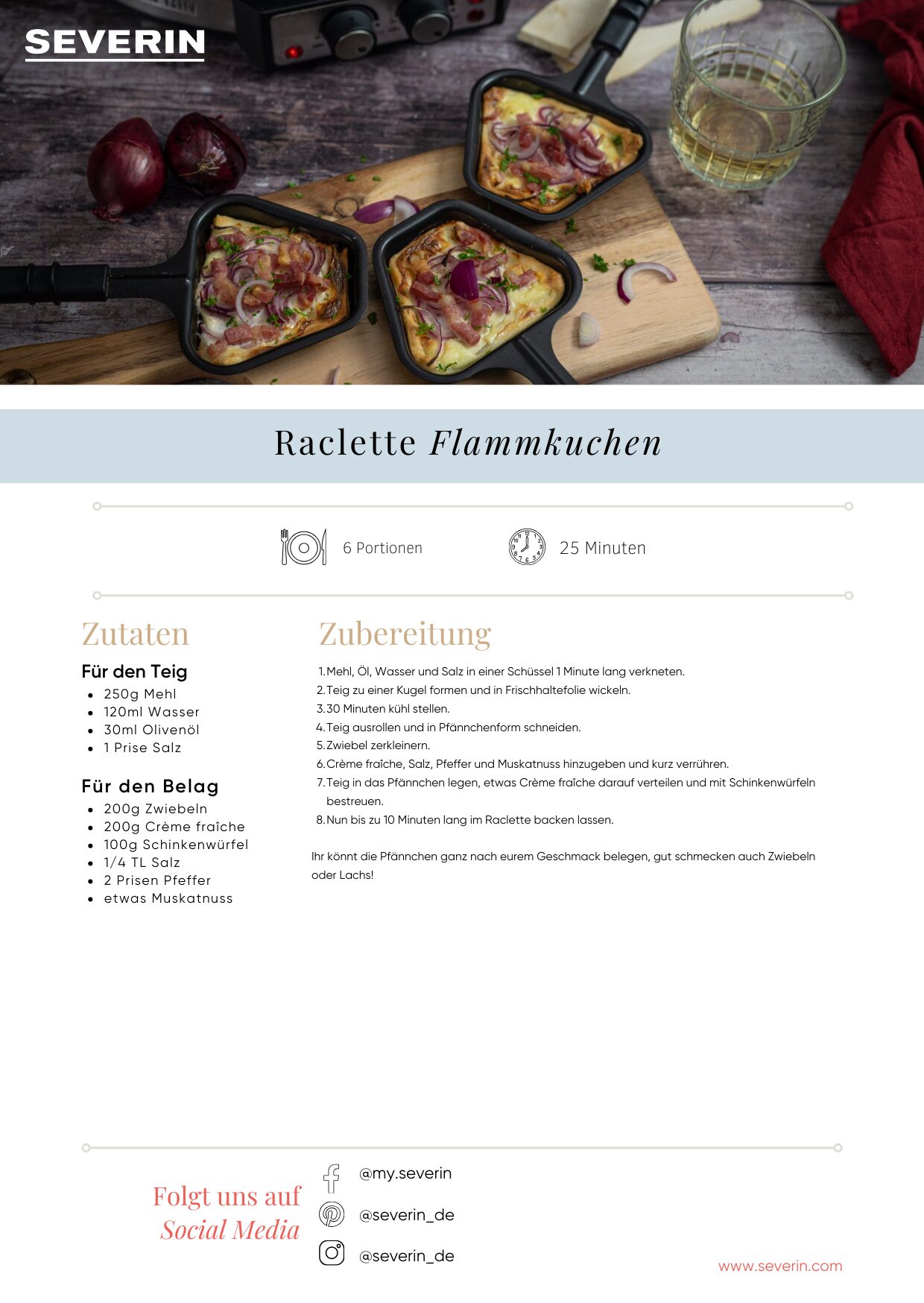 Everyone has heard of tarte flambée: a classic savory pie. There are endless combinations, but have you ever tried tarte flambée with raclette? That would be a great change for the next raclette evening, wouldn’t it?