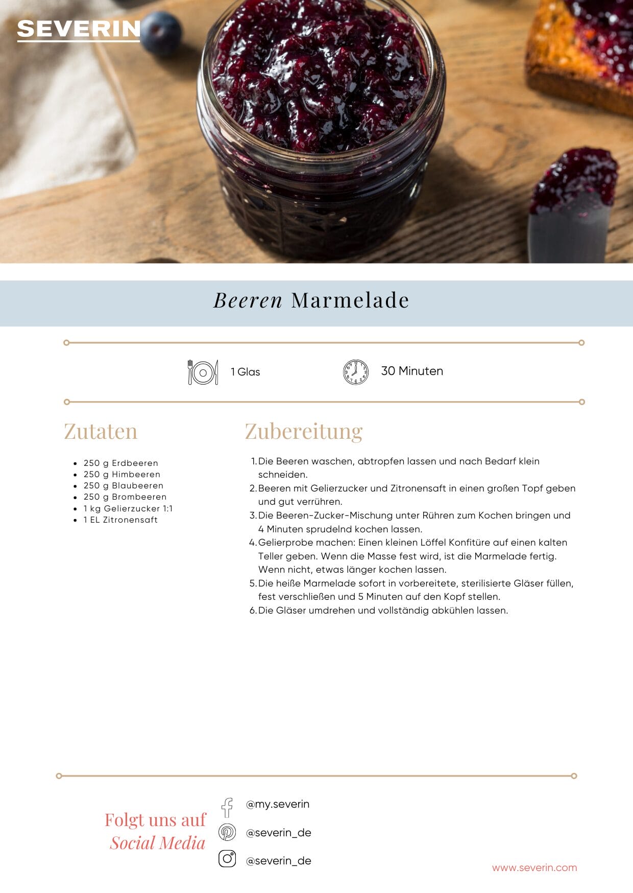 This delicious berry jam is a real treat and tastes wonderful on bread, rolls or as a filling for pastries. The mixture of different berries makes it not only fruity and sweet, but also easy to prepare.