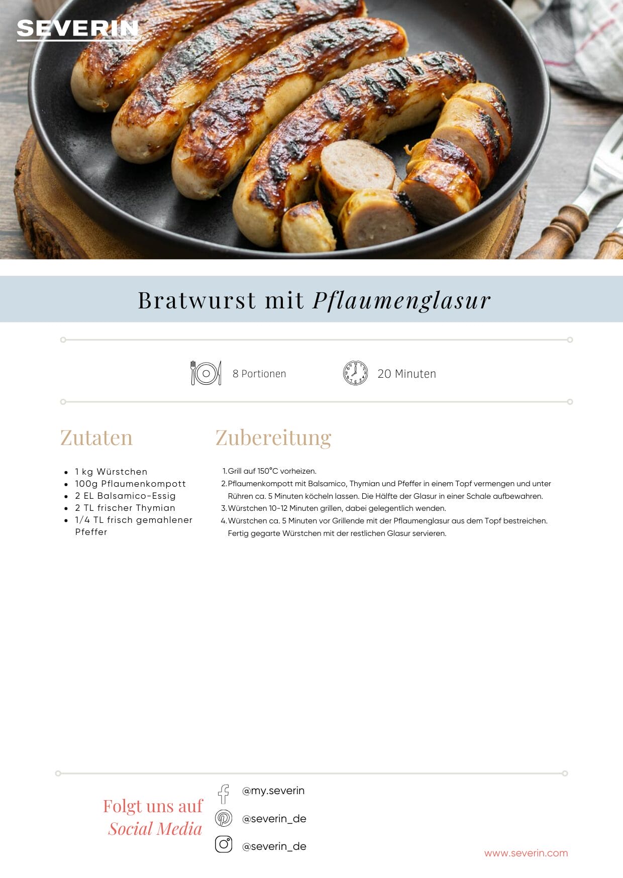 - Brush the sausages with the plum glaze from the pan approx. 5 minutes before the end of grilling. Serve the cooked sausages with the remaining glaze.