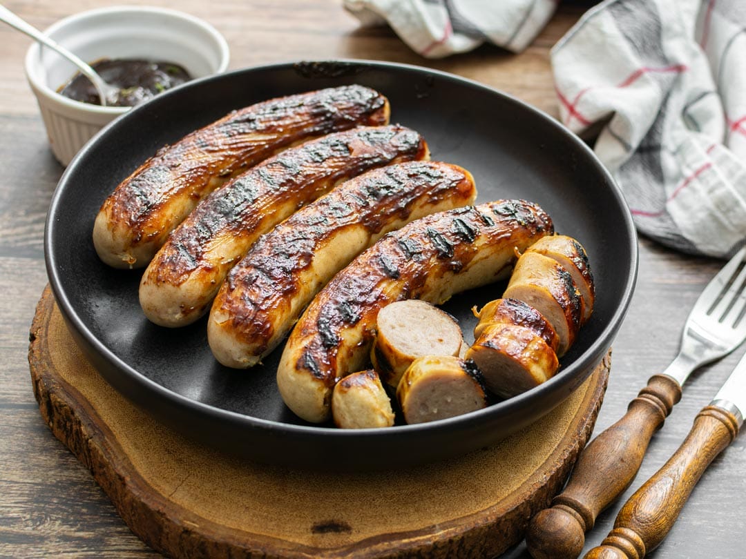 - Grill the sausages for 10-12 minutes, turning occasionally.