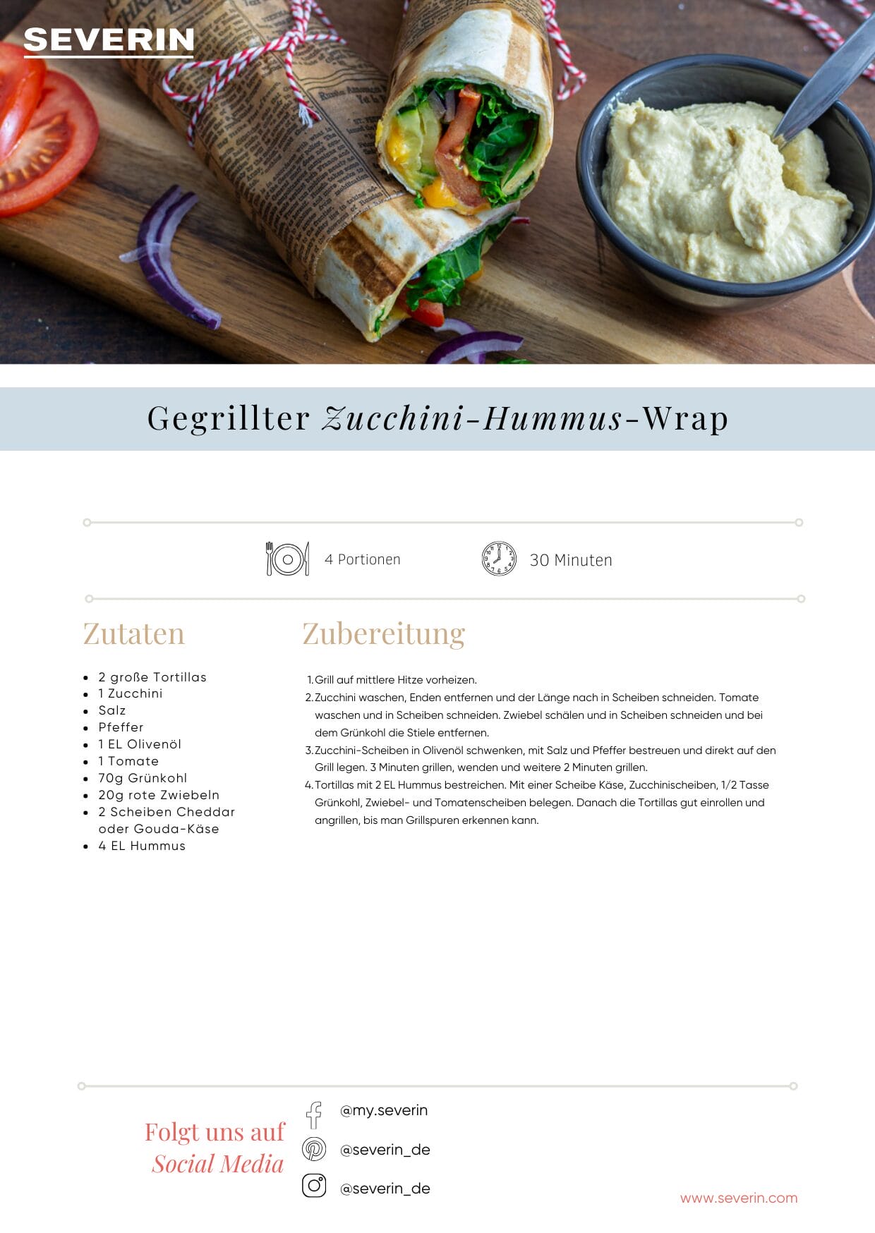 Packed, delicious and healthy: our zucchini and hummus wrap is not only quick to prepare, it also tastes great. With grilled vegetables, warm hummus and melted cheese, you can offer your guests a whole new culinary experience.