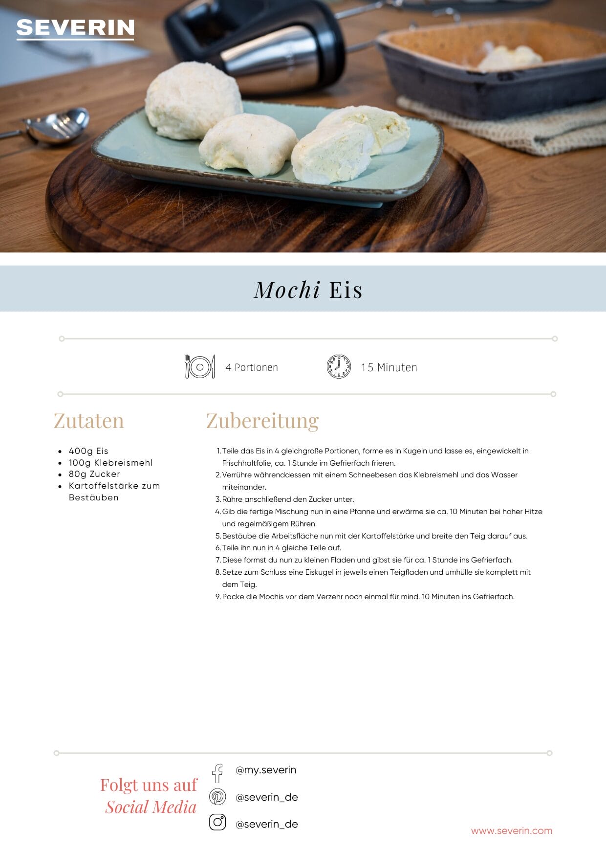 Mochi is a Japanese cake made from rice that can also be prepared as ice cream. This cake is traditionally eaten in Japan at New Year. However, this recipe can also be enjoyed as ice cream in warm summer temperatures. The shell consists of just two ingredients: Glutinous rice flour and sugar. The glutinous rice flour is made from mochi rice (or glutinous rice). The mochi are filled with bean paste, chocolate filling or ice cream. In addition to their exceptional taste, mochi are gluten-free, lactose-free and vegan. Unlike conventional cakes, mochi can therefore be eaten without hesitation :-) Of course, you can also buy the Japanese specialty in various stores. However, making your own is more fun and brings a bit of Japanese tradition to your home.