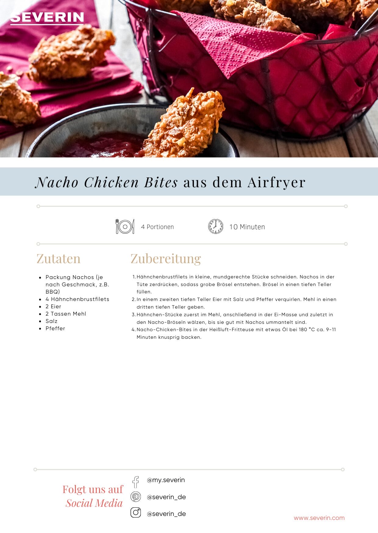 - Bake the nacho chicken bites in a hot air fryer with a little oil at 180 °C for approx. 9-11 minutes until crispy.