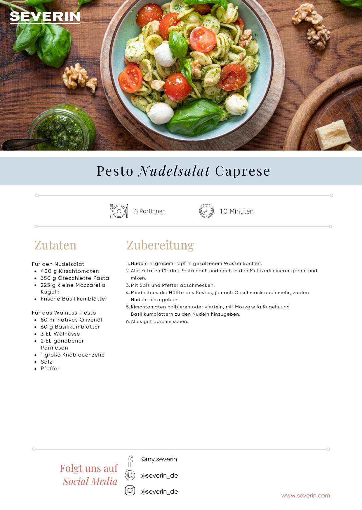 Classic tomato and mozzarella as a fresh pasta salad with homemade basil pesto. Quick to make, a colorful eye-catcher on the table and damn tasty.