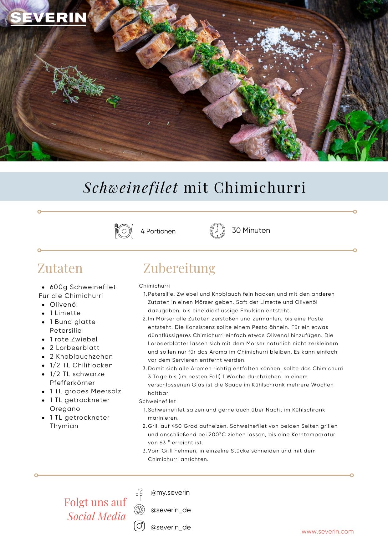 The meat is grilled to perfection. The grilled bread is ready. Now only one thing is missing - the sauce. That's what this recipe is all about and of course I want to offer you something special again this time. Chimichurri - the Argentinian herb sauce goes perfectly with grilled beef or steaks. In this recipe, it is served on a delicious pork fillet. The pesto-like sauce is also popular as a marinade for chicken and fish.