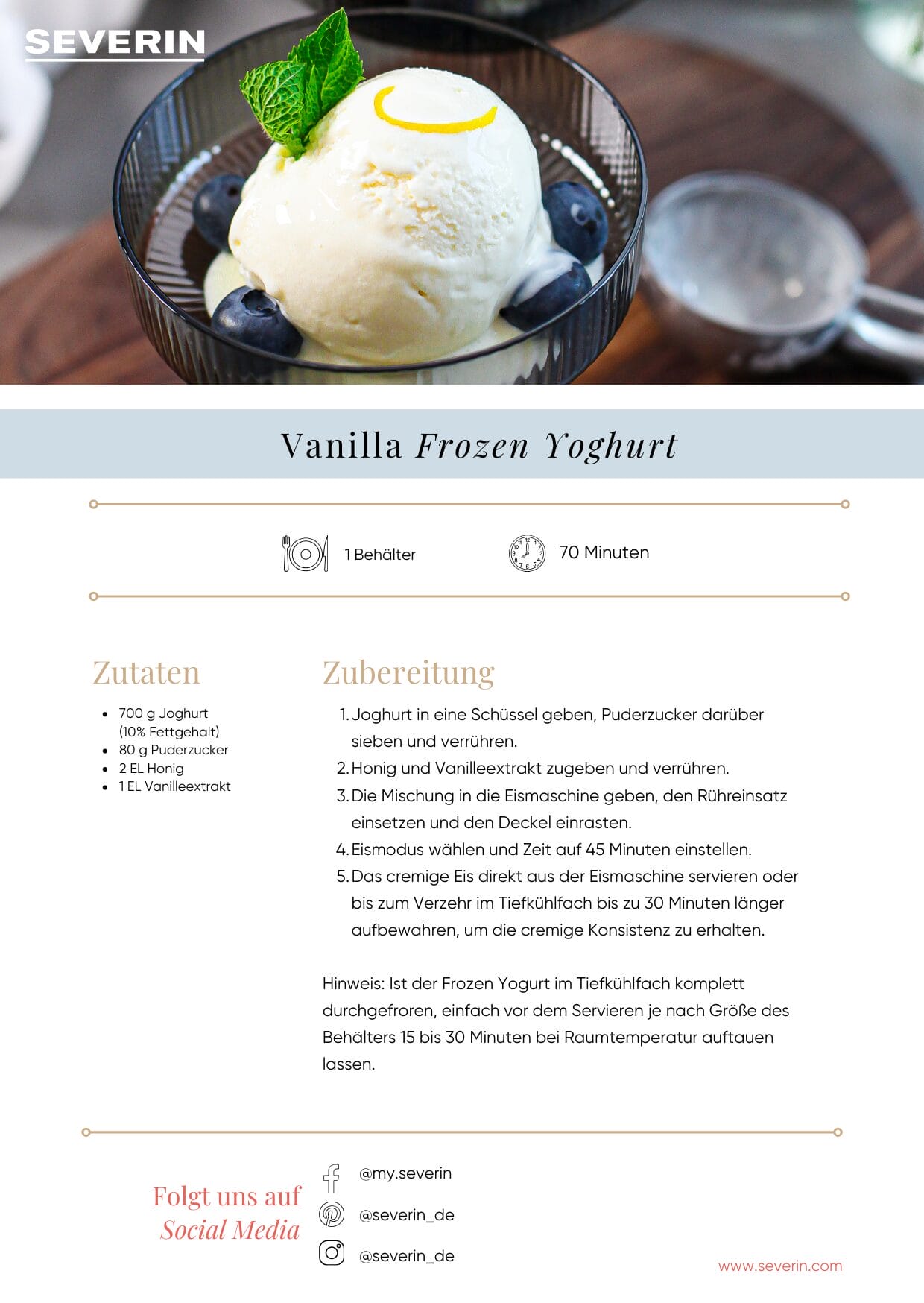 Refreshingly delicious and wonderfully creamy - you'll love our recipe for vanilla frozen yoghurt! With just a few ingredients, you can conjure up a delicious dessert in no time at all that is perfect for hot summer days. The sweet taste of vanilla combines with the light acidity of yogurt to create an irresistible combination. Whether on its own or with fresh fruit, this frozen yoghurt promises pure indulgence!