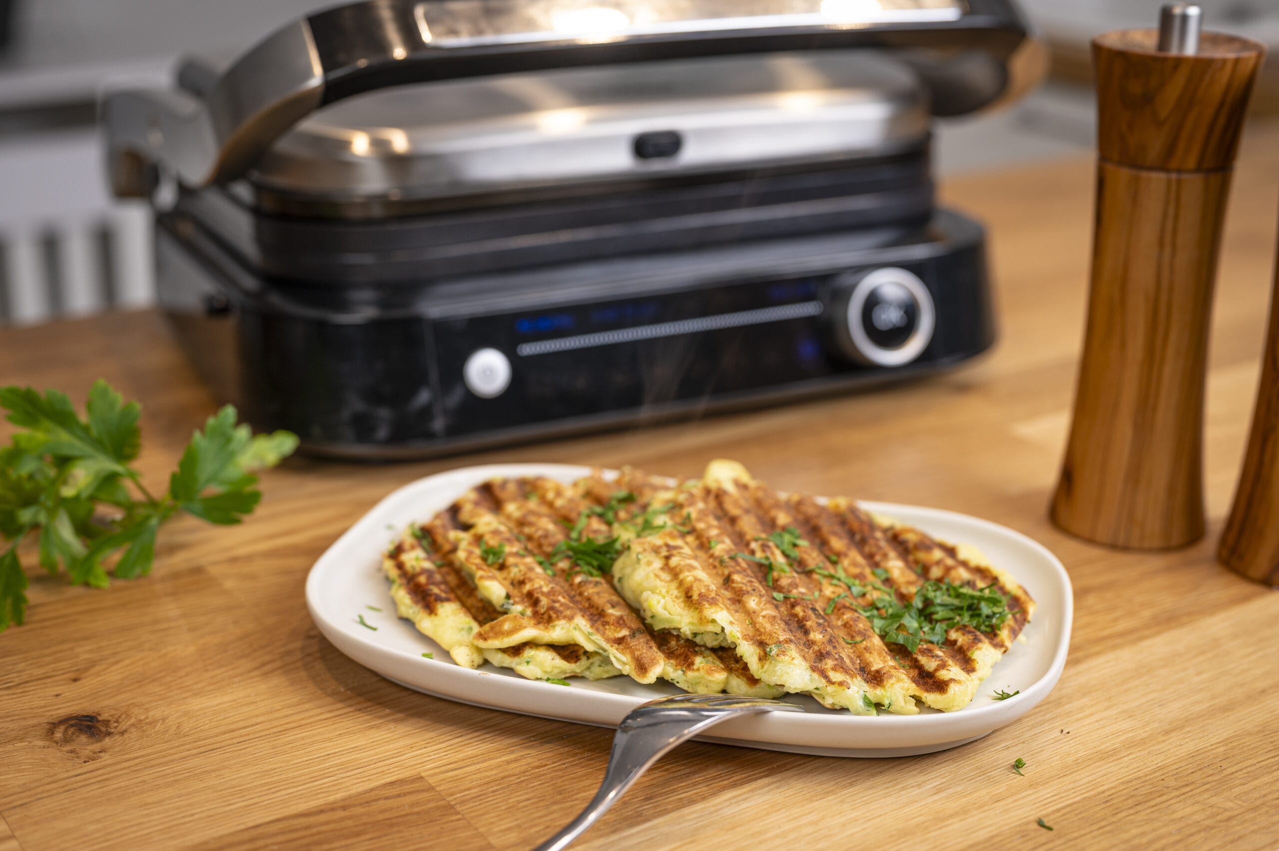 Los calabacines son una verdura muy versátil. ¿Por qué no prepararlos en la parrilla de contacto? A continuación le mostramos unas tortitas de calabacín que se preparan rápidamente y constituyen una excelente guarnición.