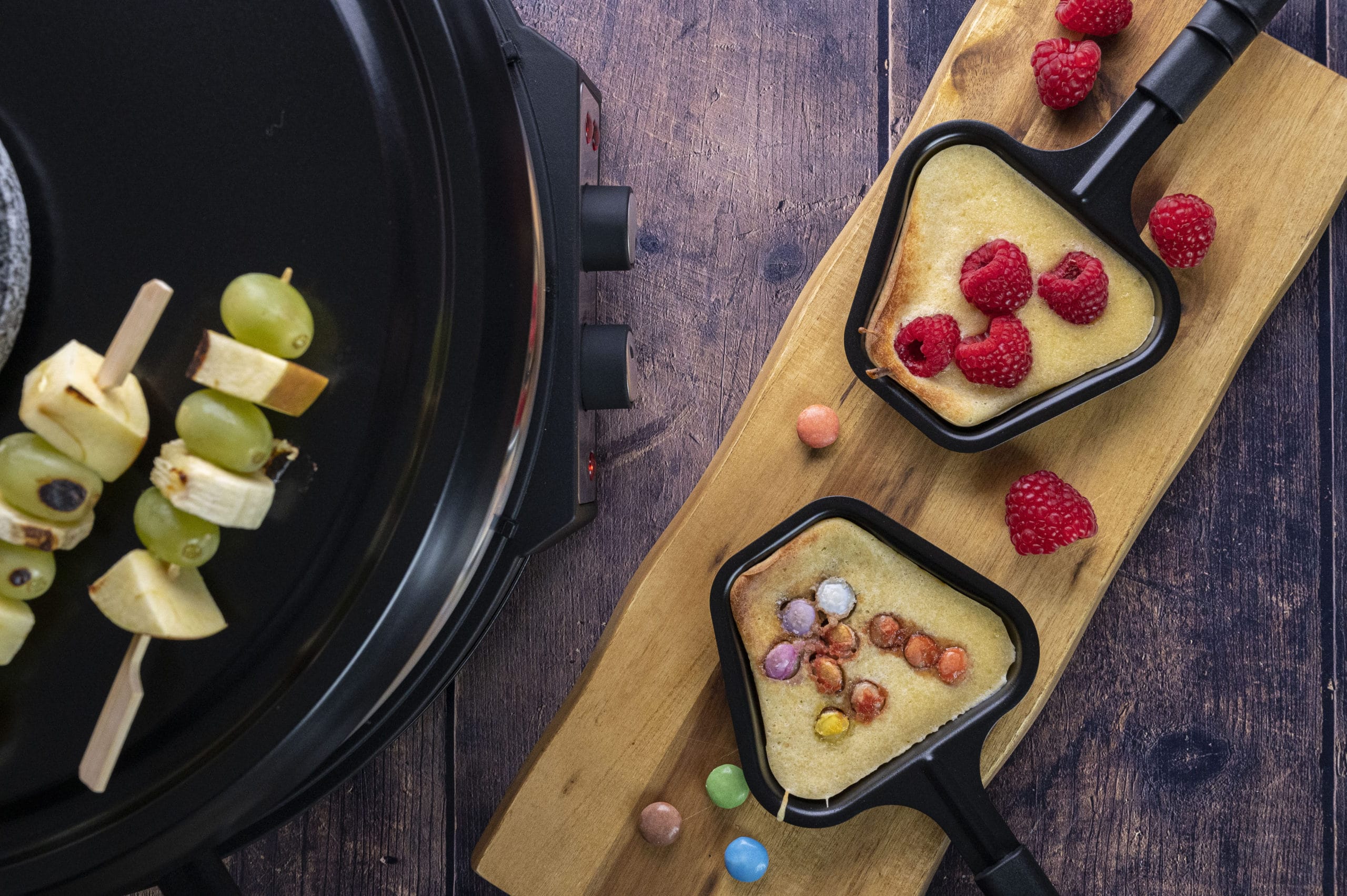 Un piatto forte per grandi e piccini: le frittelle della raclette. Affinché il dessert non venga dimenticato in una bella serata di raclette, approfittate dell'occasione per preparare subito le frittelle. Poi, completate una ricetta molto semplice con lenticchie al cioccolato, biscotti ecc. a vostro piacimento.